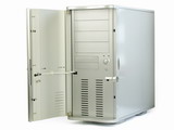 由于箱体全部采用铝合金材料制成,“海啸”VA3000SNA机箱总重量仅为5.6kg。如同Tt其他系列机箱一样,“海啸”系列机箱在前面板上也采用了门板式设计。为了让整机在关上门后在外观上达到尽可能的完美,“海啸”系列机箱特意将整个前门做成了一体??这一点点改变在大家眼里或许微不足道,但对于一款机箱的成本可就不是一个小数目了。在前门下部以及对应的前面板部分,“海啸”均开凿了不少散热孔以便冷空气能够以最快速度进入机箱。
