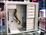 机箱的USB、IEEE1394等等接口均设计在机箱两侧。与酷冷以往的机箱一样,在内部设计方面,“天王星”做的相当优秀。除主板安装采用螺丝之外,其它方面均应用了免螺丝设计。如此对于用户来说就要方便很多了。此外,作为为发烧友准备的机箱。该款机箱在电源配置方面,也安装了一款350W产品。