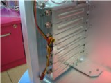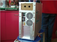 机箱的侧板部分相比上一代产品增添了导风罩,可以有利与CPU更好的散热。与我们平时看到的38度机箱侧板不同的是,这款机箱侧板的导风罩设计的非常大,这完全是为了考虑到用户在CPU上加装巨型散热器以后,对安装机箱侧板造成不便而设计。