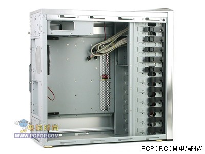 散热方面,该款机箱在后部提供了一个12英寸大尺寸风扇,正对主板成为一线的CPU、北桥、南桥以及显卡。配合顶部散热风扇,在机箱内形成了良好的对流状态。而且如果您有特殊需要,在雷神塔的侧面板上还可以附加一款大尺寸散热风扇。