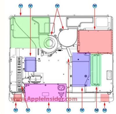 内部设计一直是苹果引以为豪的,CPU、显卡、硬盘都被设计者分布到了三个不同的散热区域且彼此直接的距离也较远。不但有效地解决了硬件过于集中、空间太小而引起的散热问题,而且噪音也控制得非常不错。