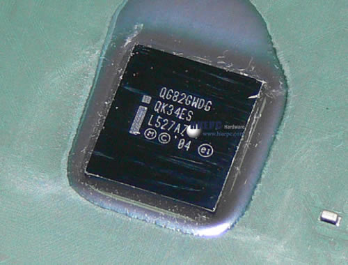 图上为i975X北桥晶片工程样本的真身,型号为QG82GWDG,而其中GWDG就是Glenwood Dual Graphics的意思,因此在规格上和Glenwood核心的i955X(QG82GWP)十分相似,除了1066MHz Dual Core的支援外,分别就只有PCI-Express绘图接口的设计,就连针脚的定义除了PCI-Express绘图部份,根本上是完全一样。
