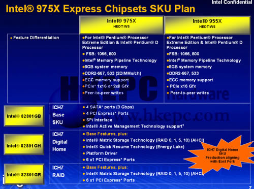Intel i975X = i955X + Dual Graphics + Presler XE Supported