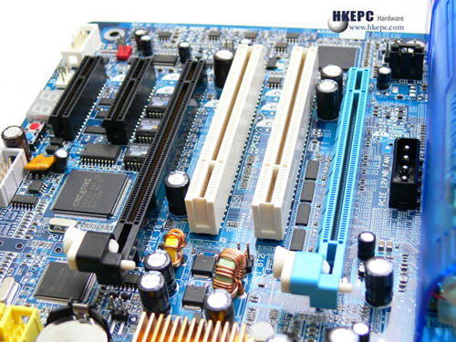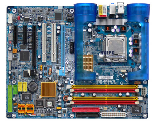 图为Gigabyte新一代Intel高阶桌面平台i975X主机板 -- GA-G1975X,虽然i975X尚未到正式发布日,但一定求新的HKEPC Hardware又怎会错过它呢。GA-G1975X保留了Gigabyte的一贯高阶主机板的传统----用料十足,主机板上可用的空间都已被Gigabyte的研发人员所填满,Dual BIOS、ITE的IDE RAID、Broadom的Gigabit Ethernet及Texas Instrument的IEEE 1394A Firewire晶片等都是例牌菜色。