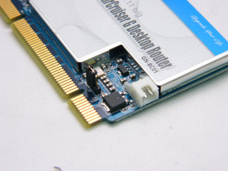 由于它是采用内置式PCI接口设计,因此不少用家都会问,如果电脑没有启动,AirCruiser G Desktop Router会否继续运作呢!?答案是肯定的,因为它可以采用外接电线,包装内附有一条主电源线的接口,可直接取得电源供应器的5V,因此电脑没没启动,AirCruiser G Desktop Router也能正常运作,但用家需要设定Jumper到采用外接电源模式。