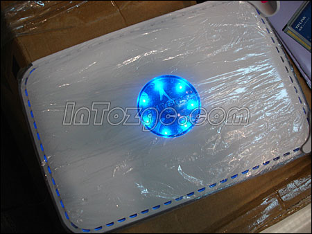产品外观采用网件传统的乳白色,给人感觉很清爽,绿色的状态指示灯分布在路由器的前端。最为显眼的就是路由器中部那个蓝颜色的环形指示灯,在工作时,内部的发光二极管有规律的交替闪烁。