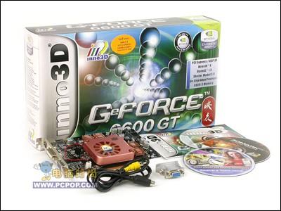 Inno3D 6600GT PCI-E我们曾经做过评测,优秀的做工和用料使我们对这款显卡的印象非常深刻。这块Inno3D的GeForce 6600 GT上面大量使用了高档的贴片电容,做工也非常优秀。黑色的PCB上面搭配了来自CoolerMaster的纯铜散热器,Inno3D还为每颗显存都安装了一个单独的散热片。默认频率为500MHz/1000MHz输出接口方面与时下大多数主流显卡相同,是D-Sub、DVI和S-Video的全接口设计。