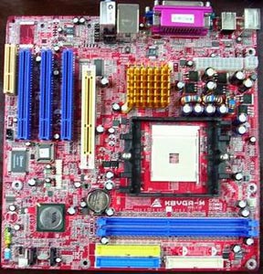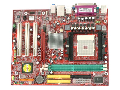 微星K8MM-V采用VIA的K8M800北桥芯片、南桥芯片则是VT8237R。支持Socket 754处理器接口、前端总线频率为800MHz、支持DDR400/DDR333。K8MM-V是一款高整合度的主板,该主板集成了S3 Pro Savage8显卡、六声道AC97声卡以及网卡(VIA VT6103L 10/100 PHY芯片)功能。虽该高度整合,但该主板却留有足够的升级空间,主板上具备了一条AGP 8X插槽,可以升级显卡;三条PCI插槽可以安装下IEEE1394卡或者是电视卡等配件;两条DIMM插槽最大可以支持2GB内存。