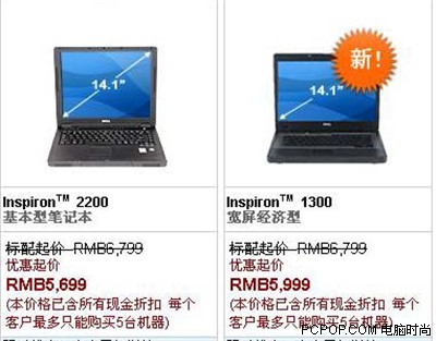 第4页:5999元:超低价14寸宽屏新品 Dell的14寸宽屏机种今日开始在网上销售。最新推出的Insprion 1300系列共五各型号,价格从6000元至9200元。