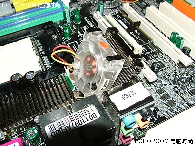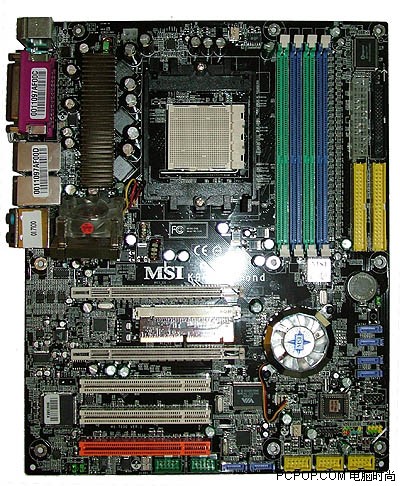 布局不错,电源离CPU位置也比较合适,IDE和软驱接口在主板的右侧,微星没有用上PCI Express扩展插槽,而是使用了3个PCI插槽。主板上无法容纳下更大的散热器。
