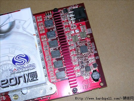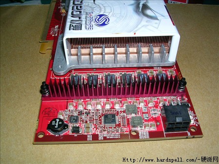 考虑到X1800系列功耗相对比较高的问题,提供了一个6针的外部辅助电源接口,同时核心与显存供电部分都设计在了显卡的右侧,采用了大量高品质的钽电容、磁壳屏蔽电感、积层陶瓷电容等,显卡正反面更是布满了大量贴片电容与高品质元件。