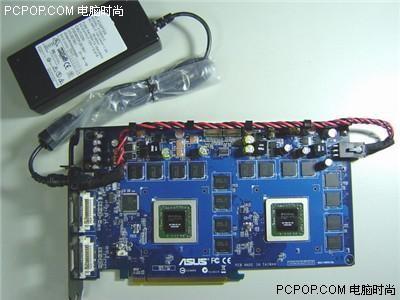 图中这款华硕的双核显卡比较的“霸道”,性能的确是很强大,但如果买它回去使用就必须外接一个变压器供电。