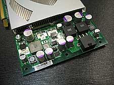 影驰GF7800GT的散热器设计大体还是继承了GF7800GTX的风格,采用了单插槽散热体系,大型的散热设备采用离心式散热加热导管散热,涡轮式散热风扇安置在显示核心的左边,空气从核心右侧排出,可以同时兼顾到显存的散热问题。由于供电部分较7800GTX有所简化,可以发现显卡PCB的长度也略短了一些。从外观可以看见,显存全部安排在PCB正面,反面没有为显存留有焊位。电源供电端口为6PIN设计,SLi端口的金手指线路清晰可现,使用SLi功能时的电源需求,+12V输出必须达到34A才能稳定运作,500W电源看来是必备了。