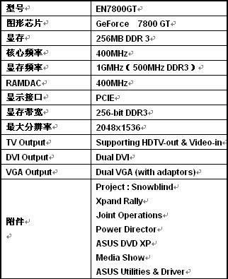 华硕EN7800GT/2DHTV/256M 参数