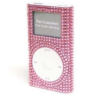 Crystalmini根据iPod mini的机身颜色镶嵌了相对应的Swarovski水晶,有粉色、蓝色、绿色以及金色,并按照顾客的需要设计了特别的花纹。