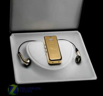 这款黄金MP3只有1GB的内存,只能存储相当于30张CD的音乐。此外,该公司还为雍容华贵的产品配备了一个华丽的黑色包装盒、一款黑色的挂式耳机和一款高性能舒尔(SHURE)e2c耳机。