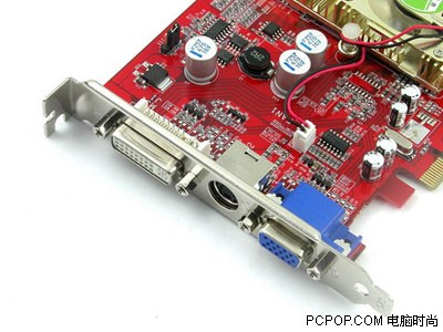 散热方式采用了精致的散热器,有利于超频幅度的提高,外接接口也非常齐全,提供了完整的TV-OUT、DVI、VGA接口,也是方便在各种场合下的不同应用。