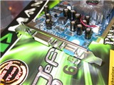 显卡核心与NV43系列核心并没有本质的区别,只是像素渲染管线缩减为4条,顶点着色单元则与NV43系列相同 同为3个。显卡采用了风扇式主动散热方式,就算在炎炎夏日散热也不会出现问题。显存方面使用的是TSOP封装的三星 4ns DDR显存颗粒,8颗全部搭载在显卡正面,组成了双128的显存规格,即显存容量128MB,显存位宽128Bit。显卡核心/显存默认工作频率为300MHz/500MHz,显存已经工作在了额定的频率上,不过不代表一点超频空间没有了,要看个人人品了哦:)输出接口提供了主流的/VGA/DVI/TV-OUT三接口输出,能够满足不同用户的使用需求。