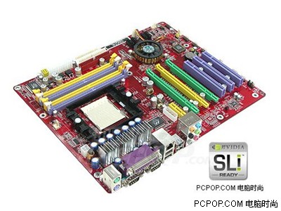 这款双敏UNF4SLI主板采用了于NVIDIA nForce4 SLI芯片组,支持1000MHz Hyper Transport总线,支持939接口的AMD Athlon FX/64和Sempron处理器,主板采用了红色PCB板,ATX大板型设计、用料充足、布局整齐,主板上的各个插槽采用了不同不同颜色加以区分,便于用户分辨。
