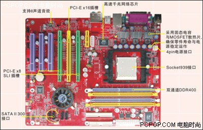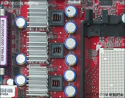 NF4芯片上采用了风扇进行主动散热,提供4个SATA和两组PATA接口;板载芯片方面,ALC850音频芯片为主板提供8声道声卡功能;88E1111-RCJ网络芯片为主板提供10/100/1000Mbps自适应网卡功能。