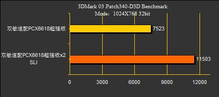 nVIDIA现在已经将它的SLI的定位面向低端系列N卡开放,如6600、6600LE等。目前双敏PCX6618超强版的最低价仅仅798元,两块加起来也不过1600元,再加上双敏UNF4SLI主板不过2400元左右,SLI后性能得到大大提升,囊中羞涩的朋友也可以切实得体验极致图形性能的乐趣了。