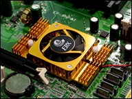 主板采用的是NF4(非Ultra也非SLI)芯片组,采用了磐正一贯的绿色PCB板风格,标准的ATX大板型设计。在做工和用料方面倒是没得说,延续了磐正精细的做工。采用三相回路供电设计,保证了供电的充足。CPU插座周围布满了大容量高品质的三洋电容,为稳定运行和超频奠定了基础。此外在nForce 4 芯片组上还使用了散热片和风扇主动散热,保证了热量的有效释放。