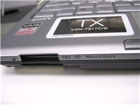 在机身的左侧就安置TX17C/L的主要接口,其中包括两个USB接口,PCMCIA扩展插槽、RJ11网络接口。机身的右侧则为9.5mm厚的内置COMBO光驱,以及VGA显示输出接口;在机身背面的电池位两侧则分别放置了RJ45网络接口,以及电源、1394接口。