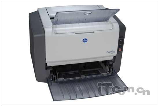 柯美1350W采用紧凑型立式外型设计,折叠式进纸盒,能够很大程度节省使用空间。1350W打印速度达到了每分钟20页,比1300w的16ppm快了很多。而且柯美采用先进的GDI技术,标配8M内存,具有1200x1200dpi的精细打印分辨率,轻松打印出清晰的文件和图片,足以满足大部分用户的需要。在数据传输接口方面,1350W使用的是USB1.1和IEEE 1284并口。1350W面板上有两个指示灯和1个按键,用以作业取消,不过面板上采用的是英文标示,对有些用户的使用不是很方便。PagePro 1350W采用了单进纸盒设计,没有手动多功能进纸匣,在处理一些特殊介质,如胶片、卡片和信封时有些不便。另外,1350W的耗材采用鼓粉分离式设计,碳粉盒和鼓更换十分方便,其硒鼓标称使用寿命为20000页,大大的降低了使用成本。
