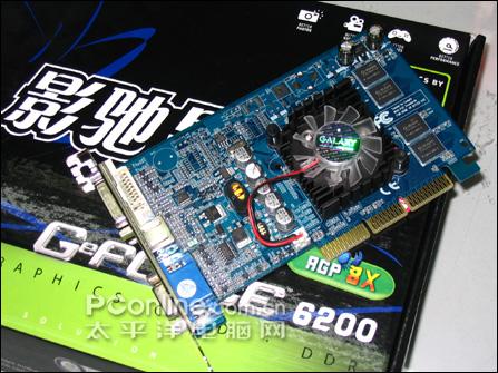 虽然现在PCI-E市场正在全面起飞,但国内的低端市场还是以AGP为主,影驰今日上市的6200A显卡为DDR2显存版本,支持DX9.0c、SM3.0,采用滚珠风扇,默认频率高达350/750MHz,性能将全面超越9550,也是未来FX5200的接棒者。影驰官方称之为“AGP不死鸟之影驰6200A刀斧手”,公开报价仅为399元,是目前所有6200A显卡的最低价位,性价比远远比采用TSOP版本的6200A高。