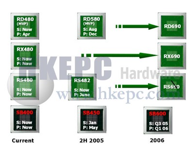 在2006年ATI将会推出全新一代的K8芯片组,包括支持CROSSFIRE技术的RD690、内建显示核心的RS690及没有显示核心的RX690,现时只有透露可能会采用X700或是RV530核心,相信会把内建显示核的效能推向另一高峰。