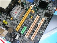4条内存插槽最大可以支持4GBDDR 400内存,并可以通过处理器内部的内存控制器实现内存双通道。主板在集成了显卡的同时,还提供了一条PCI-E X16显卡插槽,方便了用户日后的升级。1条PCI-E 1X和两条标准PCI接口也能够满足用户日后的扩展需求。