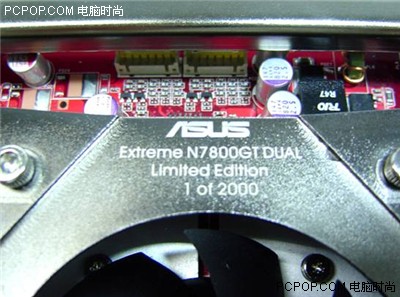 由于采用了双核心的7800GT,所以华硕采用了加强型的外置电源设计,这样可以降低系统电源压力,让显卡不会受到其它配件用电的干扰。而且可以让整个系统极限超频能力大大增加。除了外接供电接口,还具备2路数字输出接口和视频信号输入输出接口。