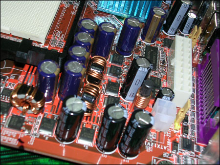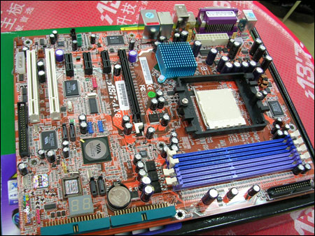 处理器供电部分采用的是三相供电设计,大量使用了高品质的红宝石电容,处分保证CPU的用电安全。标准的四条双通道DDR400插槽,在内存价格相当便宜的今天,就算大家插满4G也不会花很多的钱。