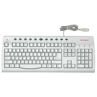这款键盘采用传统的104键设计,带有几个多媒体功能键。根据厂家公布的资料来看这款键盘的键帽采用了发热材料,手指接触到键冒就可以感觉到热量。除了键帽以外在键帽下面还有发热元件,这样只要接上电源就可以产生向上的热气流,所以不仅仅是手指,整个手掌都可以感受到热量。