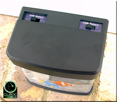 鱼缸顶部有两个开关,可以自行决定使用AA电池还是USB供电