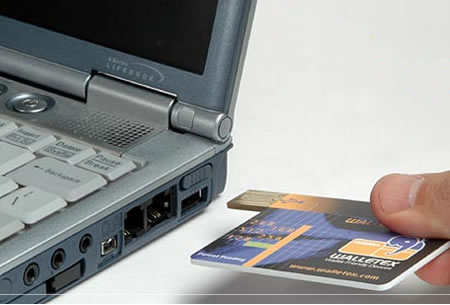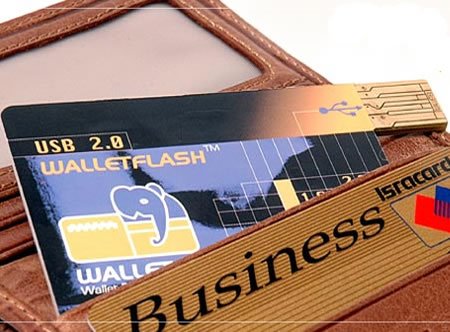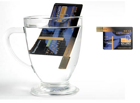 这是世界上第一张和信用卡结合得如此紧密的USB闪存卡,更可以方便地放入你的钱包,同时也是世界上最薄的存储卡,容量最高可达2G,材料特殊可以防水,同时有10年寿命,同时有个LED小指示灯显示连接状态,这玩意真不赖,不过没有保密措施,不要存储和银行帐号有关的信息哦,另外建议加个RFID标签,丢失有些许的保障,不过比起那些无法塞入钱包且占口袋空间的USB盘,这个的确是个不赖的创意,256M的价格在49美金。