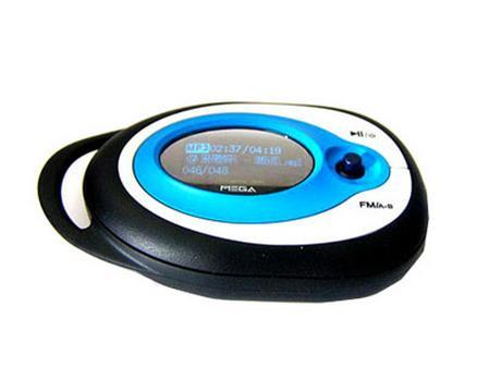 这款MP3在外观上比较出众,机身选用蓝、白、黑色,搭配上同样色泽的耳机,整体感觉更象是一款做工精美的艺术品,当配上原厂的挂袋时更像一款时尚的登山包。MP3的屏幕采用了OLED用作显示介质,鹅蛋型的它就依靠屏幕右边的五向导航键来操作了。整个MP3拿在手上感觉其有点橡胶感,相信也是为了抗震而考虑的。