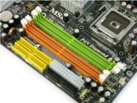 和大红的915PL Neo主板不一样,这块主板要比前者大一些。微星选择了NVIDIA的nForce4 Intel Edition做为这款主板的芯片组,这对于游戏玩家是在适合不过的。它允许我们同时运行两块PCI Express x16显卡,允许Windows桌面扩充到四台显示设备上,同时也支持SLI模式。