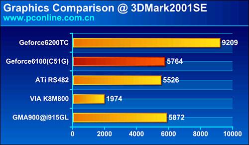 C51G集成了NVIDIA核心为NV44的Geforce6100显示卡,接下来咱们来看看它的图形显示性能。
