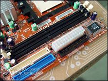 南桥nForce 410芯片支持2个SATA2.0接口和2个IDE接口,支持PATA/SATA混合RAID。扩展方面则提供了1条PCI-E 16*接口和3条PCI接口,基本能满足消费者的扩展需求。主板集成图像显示核心,但依然提供一条PCIE x16的接口,有利于消费者日后升级独立显卡使用;另外还有三条传统的PCI主板扩展插槽。