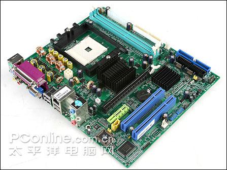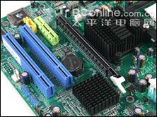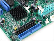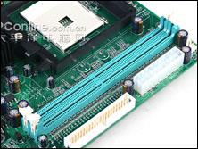 由于采用小板设计,内存插槽仅提供了2条,支持DDR400,最大支持2G容量的内存。