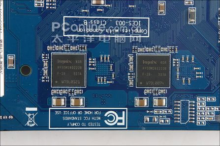 蓝宝X800GTO 128M全部采用16管线设计的X800XL芯片,频率维持400Mhz/700Mhz的水准,搭配8颗4x32规格的GDDR1显存的组成128M 256bit的高端规格。高速散热风扇并用上素质不错的铜质散热片,散热效果不错,但是噪音也比较大,希望蓝宝方面可以加以改进。正反面各四颗Hynix 2.8ns GDDR1模组运行在700Mhz的频率,由于GDDR1延时比较低因而实际运行起来效能也相当不错。