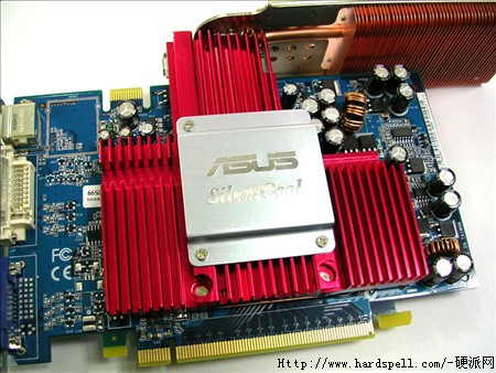 华硕6600GT Silencer采用了华硕最新的SilentCool静音散热技术,采用旋转的热管加散热片方式进行散热,不但可以大幅降低图形显示核心和高速缓存的温度,更完全消除了由于采用风扇所产生的噪音。