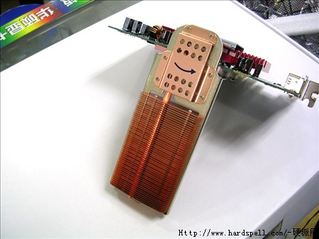 显存部分,这款显卡采用了三星 -2.0ns GDDR3显存颗粒,容量为256M,位宽128bit,正反共8颗,默认频率为1000MHz。显存部分也被热管散热器覆盖,所以在散热问题上我们不需要担心,即使超频后使用也不会出现散热问题。