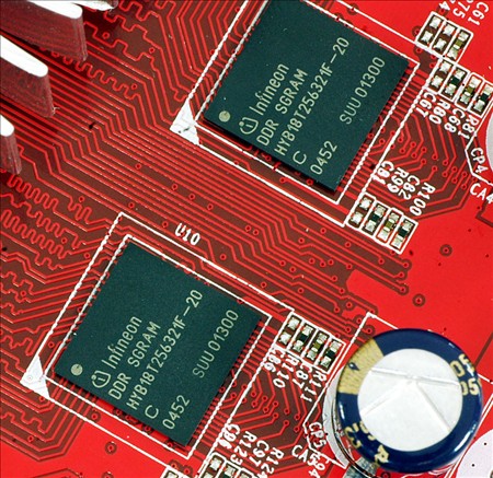 在显存上,采用了采用了MBGA封装的英飞凌GDDR3 2.0ns显存颗粒,128M 128BIT规格,默认频率为900MHz,比公板频率要高出不少,并且值得一提的是,该款显卡性能相当强,超频后甚至赶超众多6600GT水平,称之为超频版显卡绝不为过。