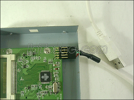产品附送了一条内置数据线和一条外置数据线。外置时,只能插入下排的针脚,并且黑面朝上,否则会短路。内置时,一般不会插反,因为有一个插孔被堵住了,只能对应下排。