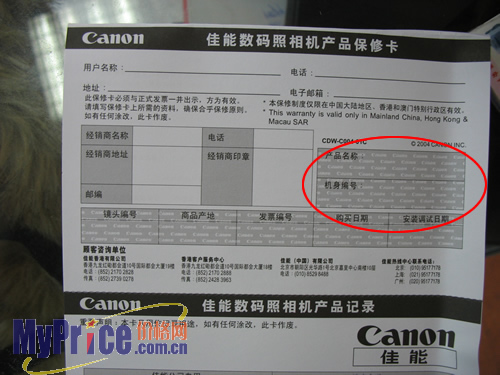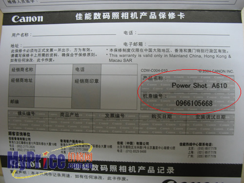 现在水货佳能相机的造假越来越高,小编遇见的可能只是其中的一种,如果有消费者也买到水货A610,造假方式和小编的有所不同,欢迎打电话到Myprice与MAO2联系,我们会在第一时间内把这个买水货的JS曝光。