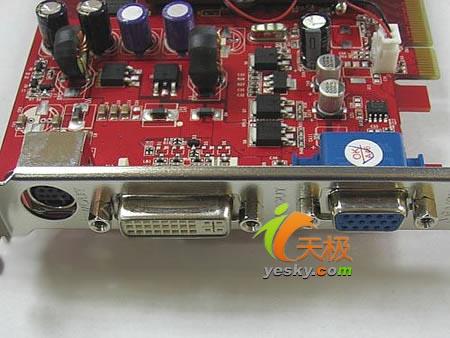 显存方面,天行6600-GD2采用的是南亚DDR2显存颗粒,正面分布了8颗64M显存,显存容量为512M,显存位宽为128bit,默认频率为700MHz。在频率上还有很大的提升空间。该卡提供了VGA+DVI+S-Video三种输出方式,这为以后支持HDTV高清电视提供了方便,感兴趣的朋友可以到市场看看。