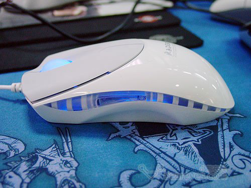 接通后鼠标发出的是和蓝色粒子相仿的蓝色光线,在洁白的壳体周围闪烁,非常妩媚。从它的样子来看,把它选入独具魅力产品毫不过份。不足之处依然是价格,要价345元呢!