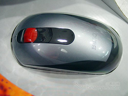 明基BMW鼠标采用了流线型外观设计,采用磨沙质感的材质能够有效防止手滑,银黑搭配也突显了产品的时尚感。前方硕大的滚轮呈红色,十分醒目。